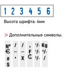 | Высота шрифта: 4 мм. Кол-во разрядов: 6 + дополнительные символы. |