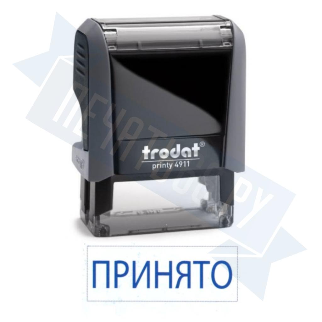 - Штамп ПРИНЯТО на автоматической оснастке Trodat 3911 размером 37 х 14мм по цене 1398 рублей и еще 84 вида штампов со стандартными словами